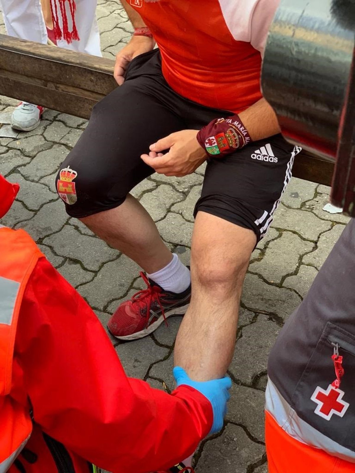 Personal de Cruz Roja atiende a uno de los heridos en el segundo encierro de San Fermín 2019 - CRUZ ROJA