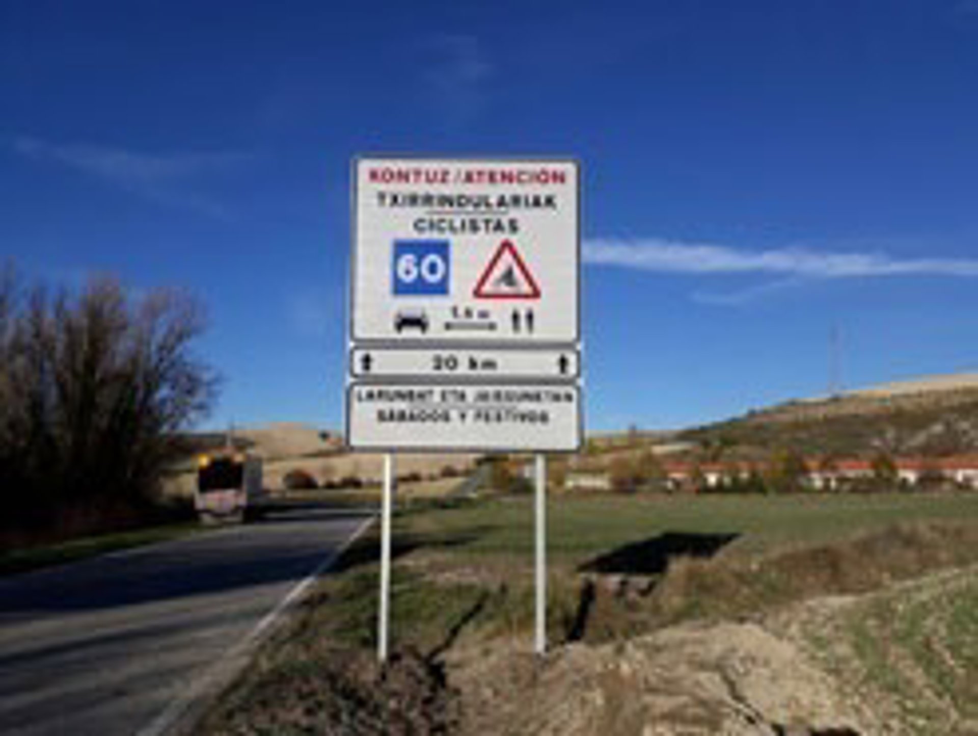 Los carteles y señales, rotulados en castellano y euskera, recuerdan la probable presencia de ciclistas en la carretera, la obligación de respetar la distancia de separación de 1,5 metros respecto a las bicicletas durante las maniobras de adelantamiento, la recomendación de reducción de la velocidad para los vehículos de motor y la longitud del tramo de carretera afectado, ha informado el Gobierno foral en una nota.