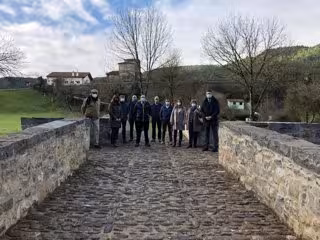 El director general de Cultura - Institución Príncipe de Viana, Ignacio Apezteguía, ha visitado el puente medieval de Saigots, acompañado por la directora del Servicio de Patrimonio Histórico, Susana Herreros; la alcaldesa del Valle de Esteribar, Matilde Añón, y el arquitecto de la obra, Leopoldo Gil.