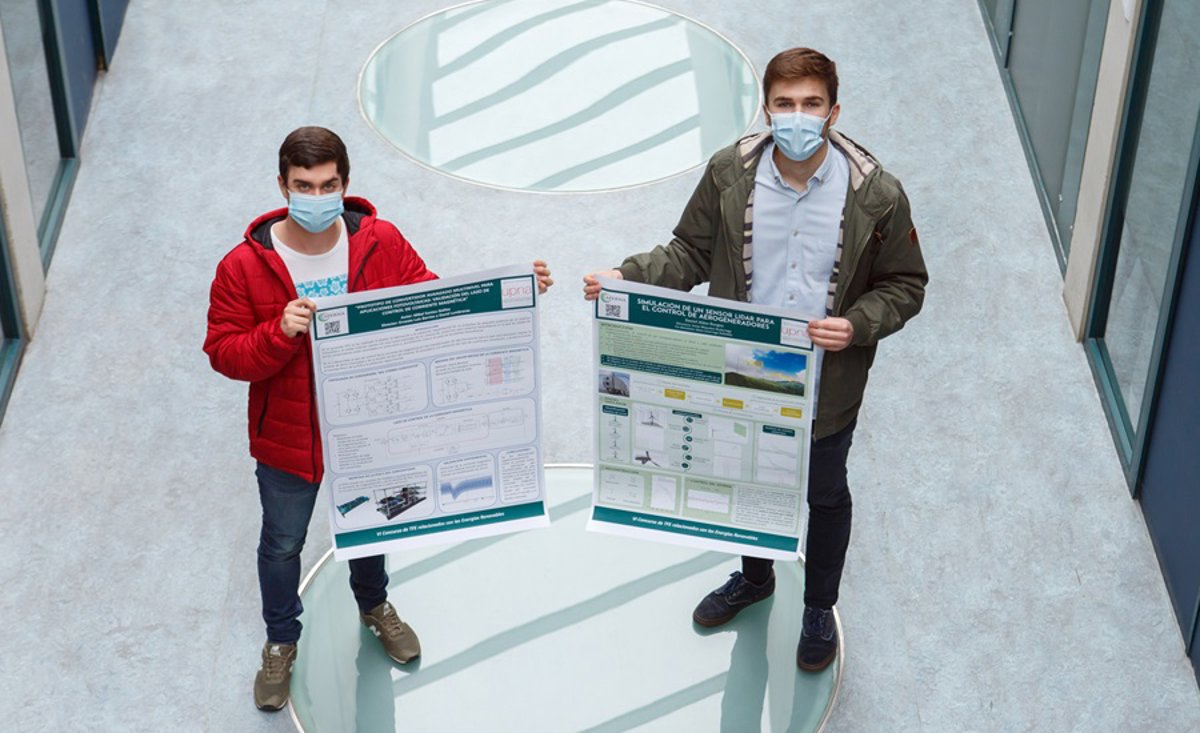 Daniel Aldaz Burgoa, que ha recibido 300 euros, presentó un póster sobre su trabajo 'Simulación de un sensor LIDAR para el control de aerogeneradores un proyecto'. El trabajo fin de grado del ganador ha sido dirigido por Irene Miquelez Madariaga e Idoia Lizarraga Zubeldia, investigadoras del Departamento de Ingeniería de la UPNA.