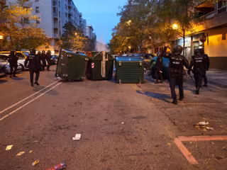 La Policía Nacional, desplegados ante incidentes provocados por encapuchados que protestaban contra un acto de Vito Quiles en Pamplona que había sido suspendido previamente. - EDUARDO SANZ-EUROPA PRESS