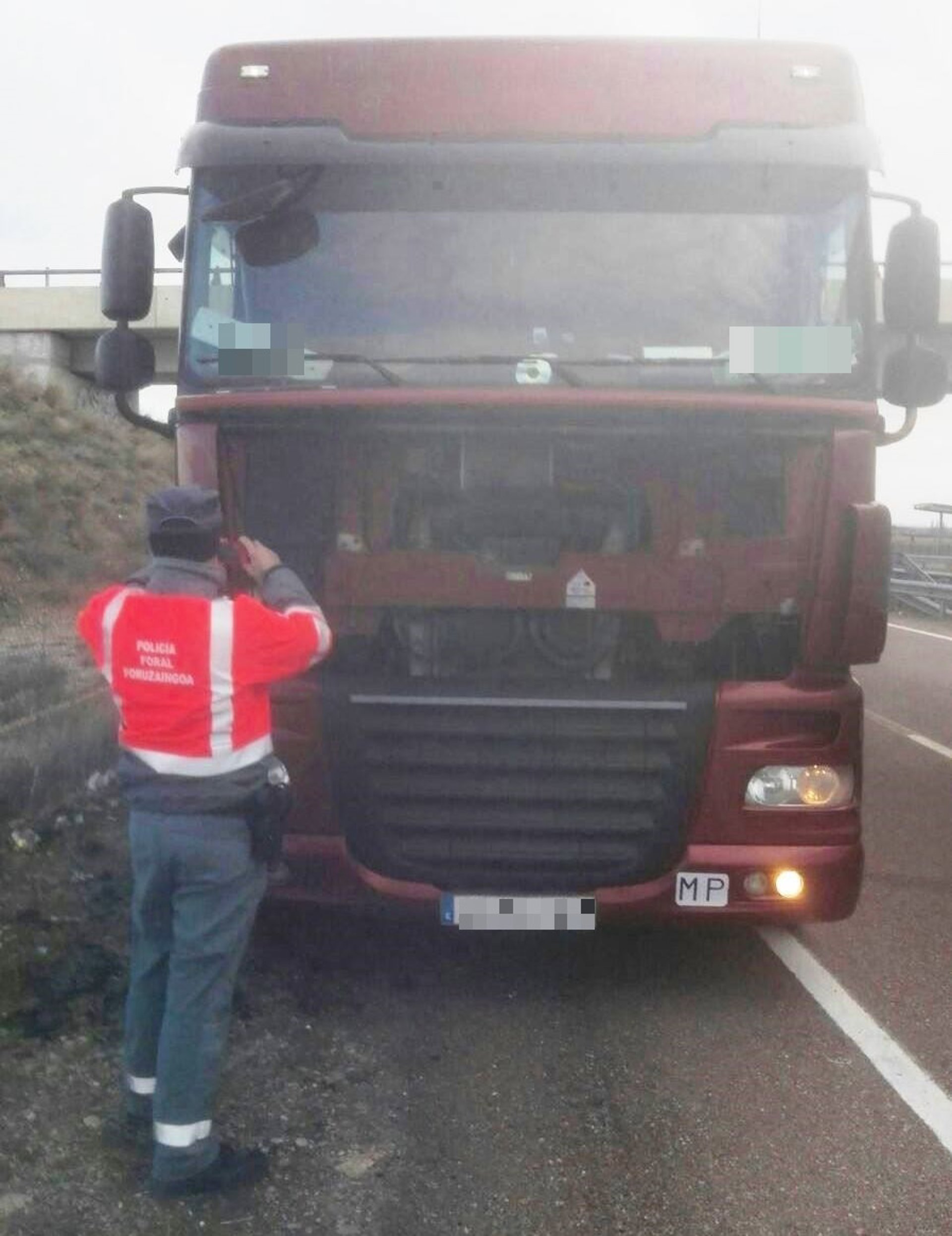 Agentes de la Policía Foral, adscritos al Grupo de Transportes de Tudela, denunciaron ayer jueves un nuevo caso de manipulación del sistema de tratamiento de emisión de gases en un camión, lo que supone una infracción grave a la ley medioambiental que puede acarrear una sanción de hasta 12.000 euros.