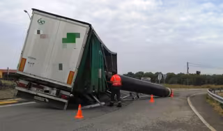 La salida de vía, con pérdida de carga, se ha comunicado a SOS Navarra a las 14.31 horas y hasta el lugar se han movilizado patrullas de Transportes y Seguridad Vial adscritas a la comisaría de Tudela, ha informado la Policía Foral.
