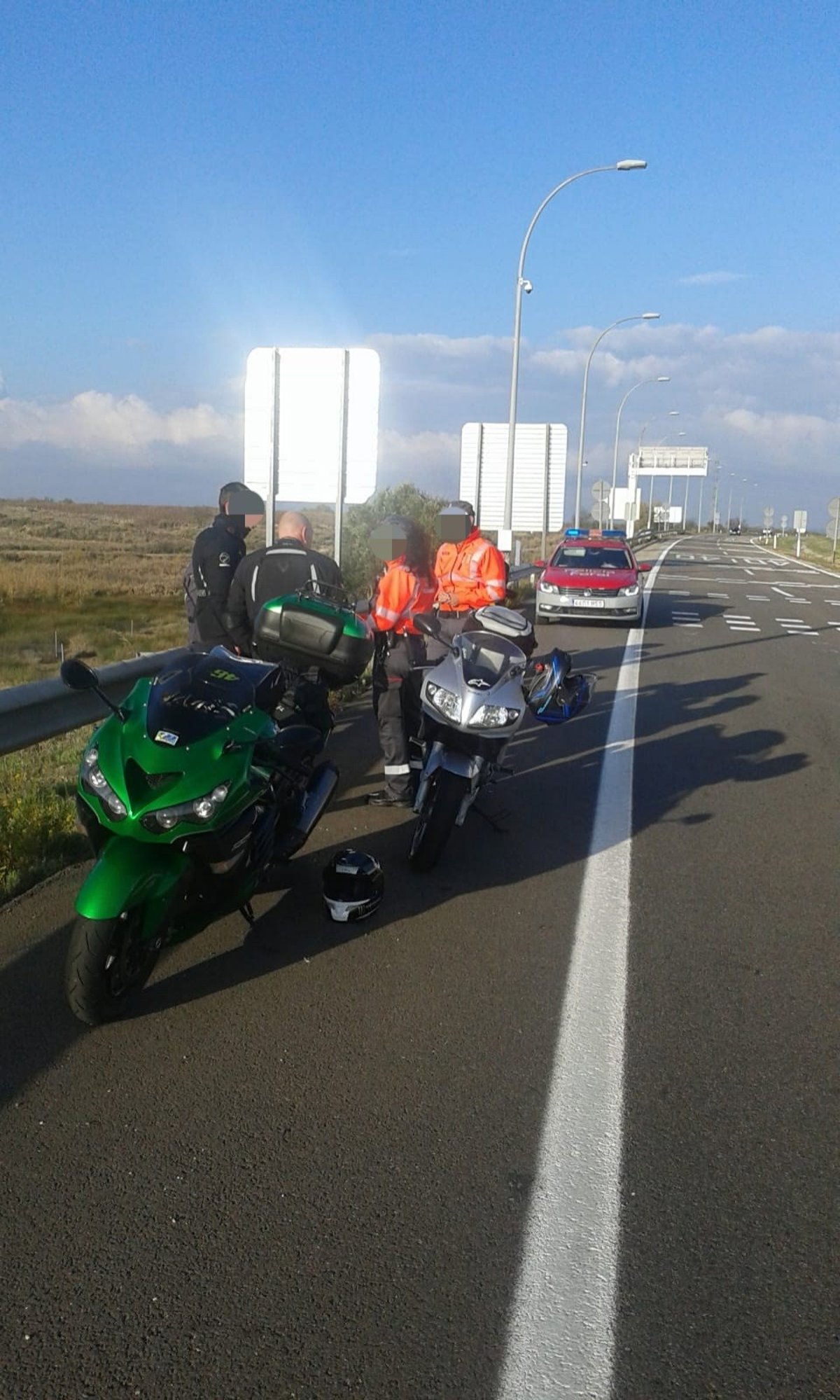 Se ha movilizado a una patrulla de tráfico de Tudela que ha conseguido localizar a los motoristas y pararles después de circular tras ellos a gran velocidad en el kilómetro cero de la AP-15, en su enlace con la AP68.