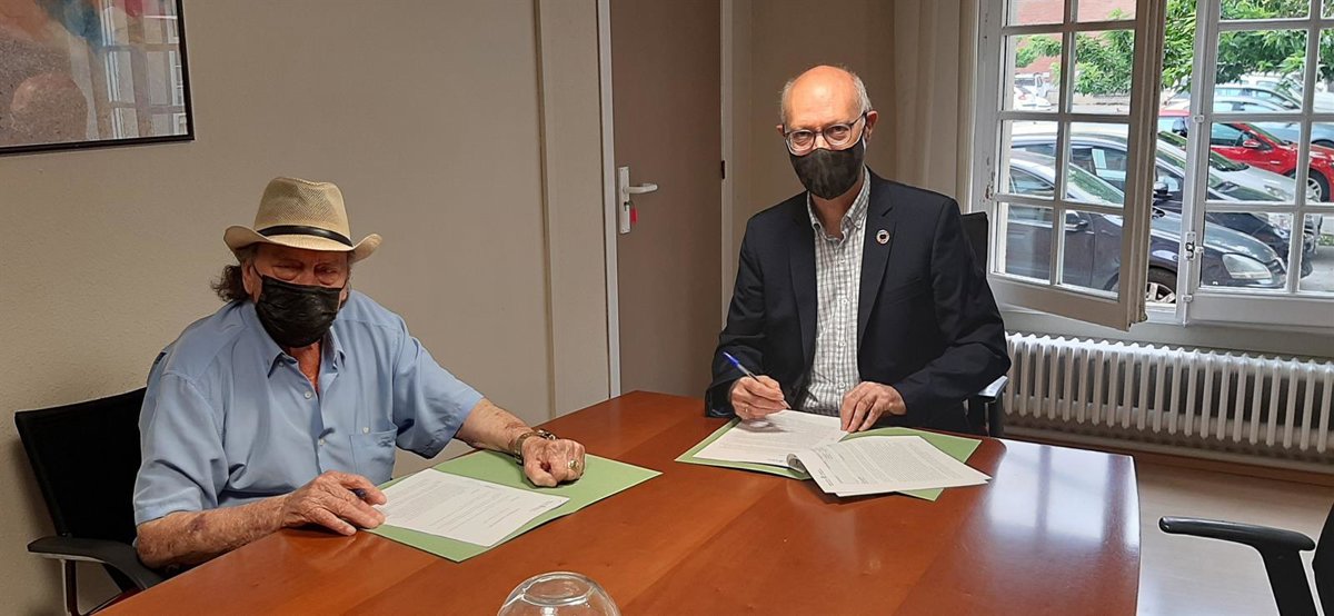 El presidente de la Federación Gaz Kaló, José Jiménez, y el director general de Derechos Sociales, Andrés Carbonero, en la firma del convenio - GOBIERNO DE NAVARRA