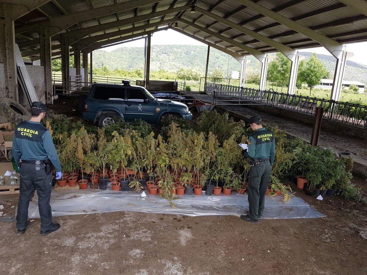 La Guardia Civil ha desmantelado en Basaburua un invernadero dedicado al cultivo de marihuana que estaba oculto en una explotación agrícola, y ha intervenido 530 macetas, así como numerosos cogollos en secadero y almacenados en bolsas listas para su distribución.