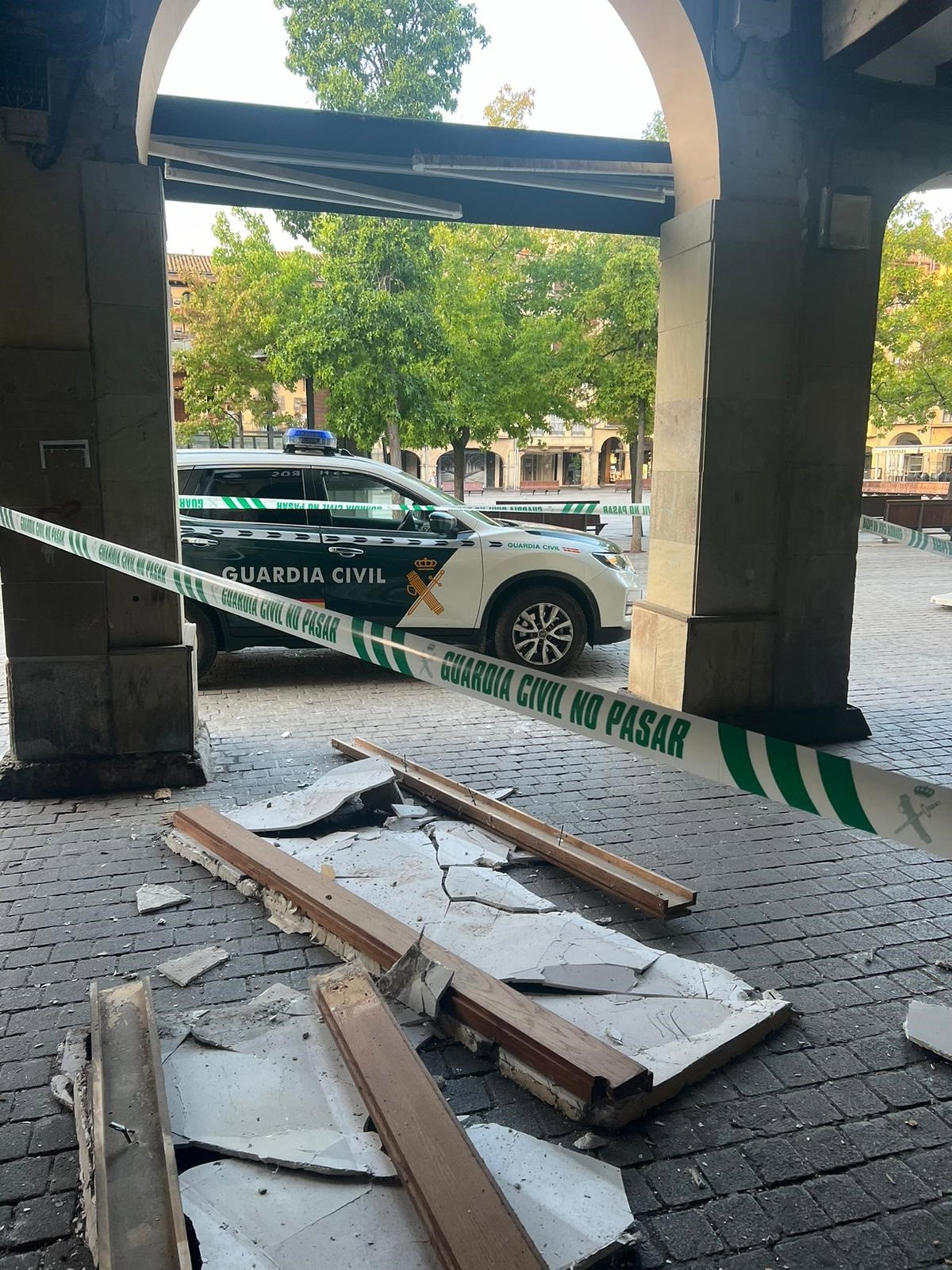 Imagen del desprendimiento de parte del techo de los soportales de la Plaza de Los Fueros en Estella - GUARDIA CIVIL DE NAVARRA
