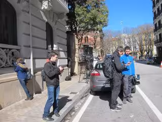 Las detenciones han levantado una amplia expectación y una treintena de periodistas, fotógrafos y cámaras de televisión se han congregado a las puertas de la comisaría de Pamplona, a la espera de la posible salida de los detenidos para prestar declaración ante el juez o para practicar nuevos registros.