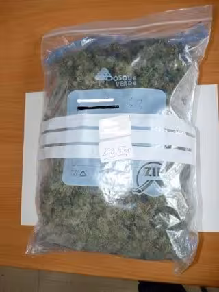 Ante todas las evidencias obtenidas, se procedió a la detención de las cuatro personas y se solicitó la correspondiente orden judicial de entrada y registro de su domicilio, localizando en su interior dos bolsas de plástico grandes que contenían marihuana, así como 22 bolsitas pequeñas preparadas para su venta. También se encontró una cantidad de dinero en billete fraccionado, posiblemente utilizado para el pago de la droga, además de una bicicleta de montaña, un ordenador portátil y un teléfono móvil que habían sido denunciados por robo.