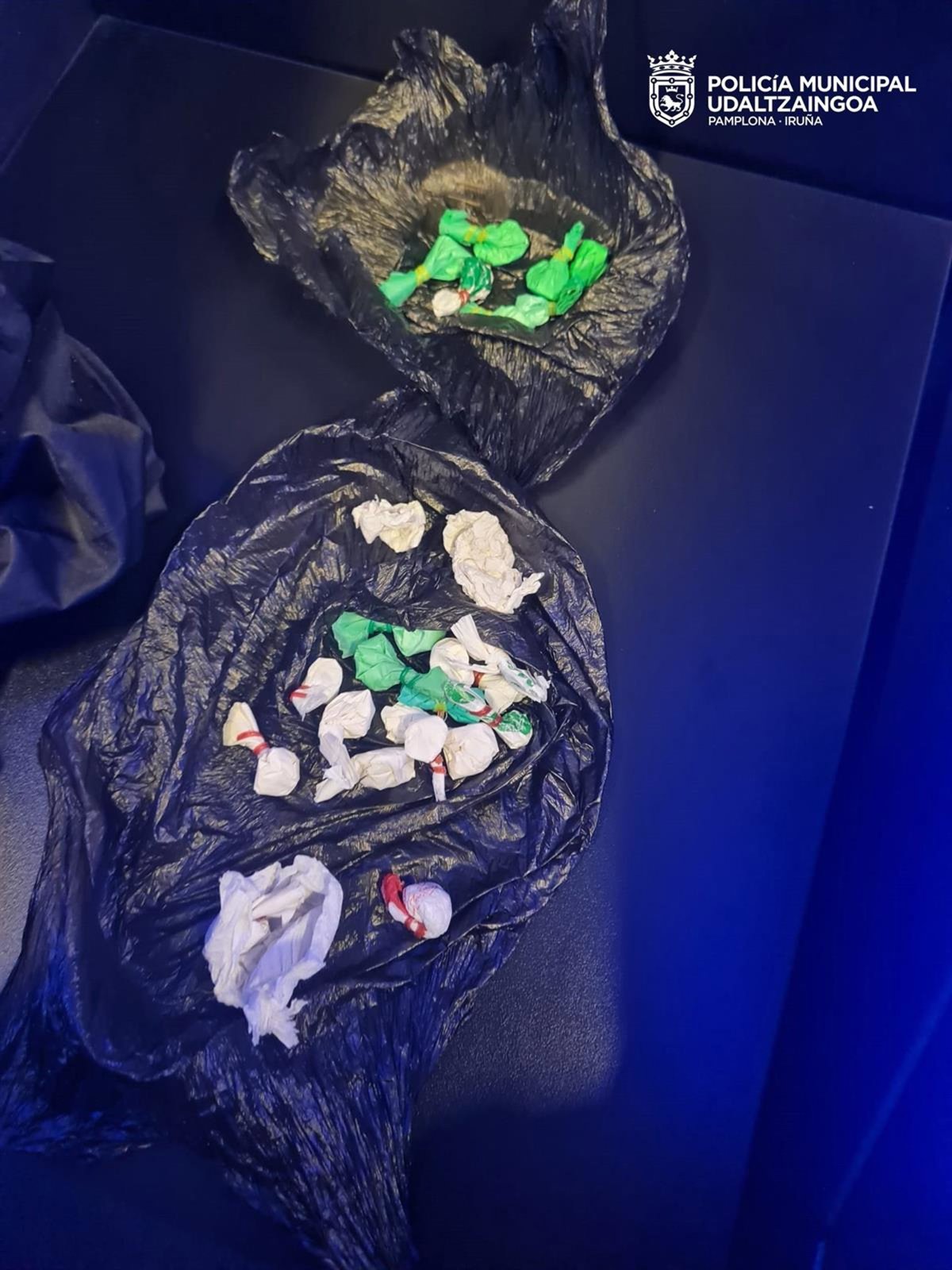 Dos personas han sido detenidas este jueves en Pamplona por un delito contra la salud pública por tráfico de drogas. Una se encontraba en el interior de un salón de juegos en el barrio de la Rochapea, y la otra en el interior de la estación de autobuses de la capital navarra.