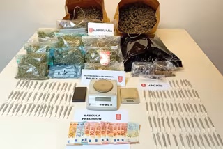 En el registro del local, además de la droga, se hallaron básculas de precisión en funcionamiento, envasadoras de vacío, prensas para elaboración de resina de cannabis (hachís), cientos de cigarros con marihuana preparados para su venta, cerca de 2.000 gramos de sustancia herbácea, 300 gramos de hachís, teléfonos móviles y una cantidad de dinero cercana a los 2.000 euros.
