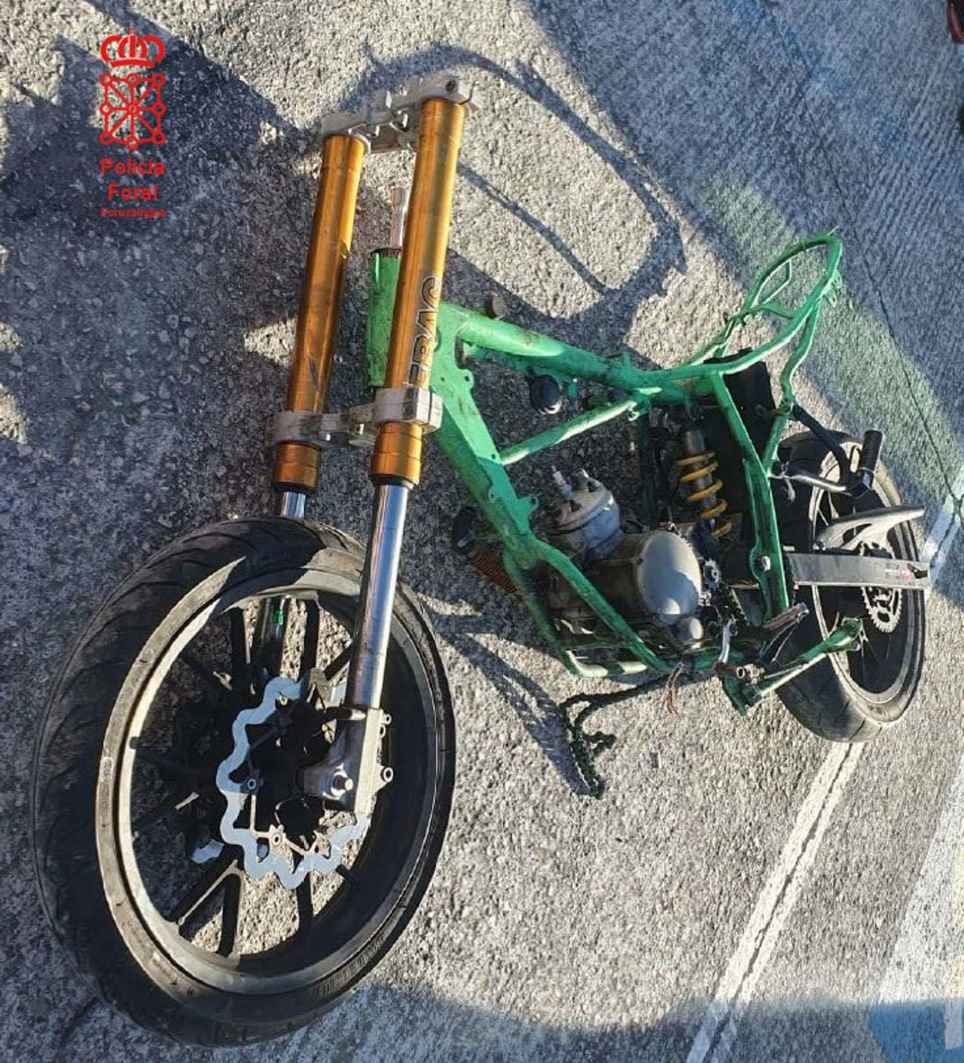 Chasis de la moto robada y recuperada. - POLICÍA FORAL