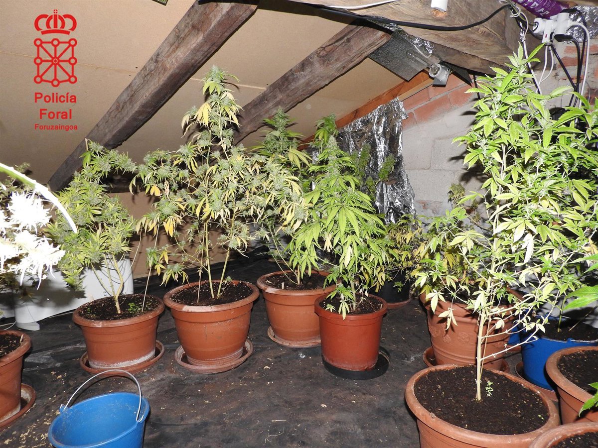 Cuando los agentes entraron en el domicilio observaron la existencia de nueve recipientes con cogollos de marihuana, 60 gramos de hachís, bolsas para dosificar la droga y 600 euros en efectivo. Además, en una de las habitaciones encontraron una plantación de marihuana con 51 plantas en diferentes grados de crecimiento. Por ello se le imputó también un presunto delito contra la salud pública.
