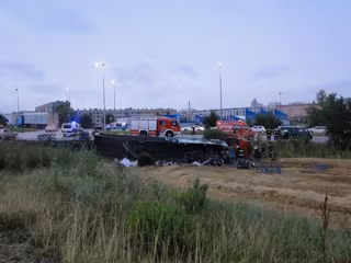 El camión articulado, que transportaba piezas metálicas de gran tamaño, ha volcado en la rotonda, quedando tumbado en las inmediaciones de la calzada. El conductor y único ocupante ha quedado inicialmente atrapado dentro de la cabina y ha tenido que ser evacuado por los servicios de emergencia desplazados al lugar con lesiones de carácter leve.