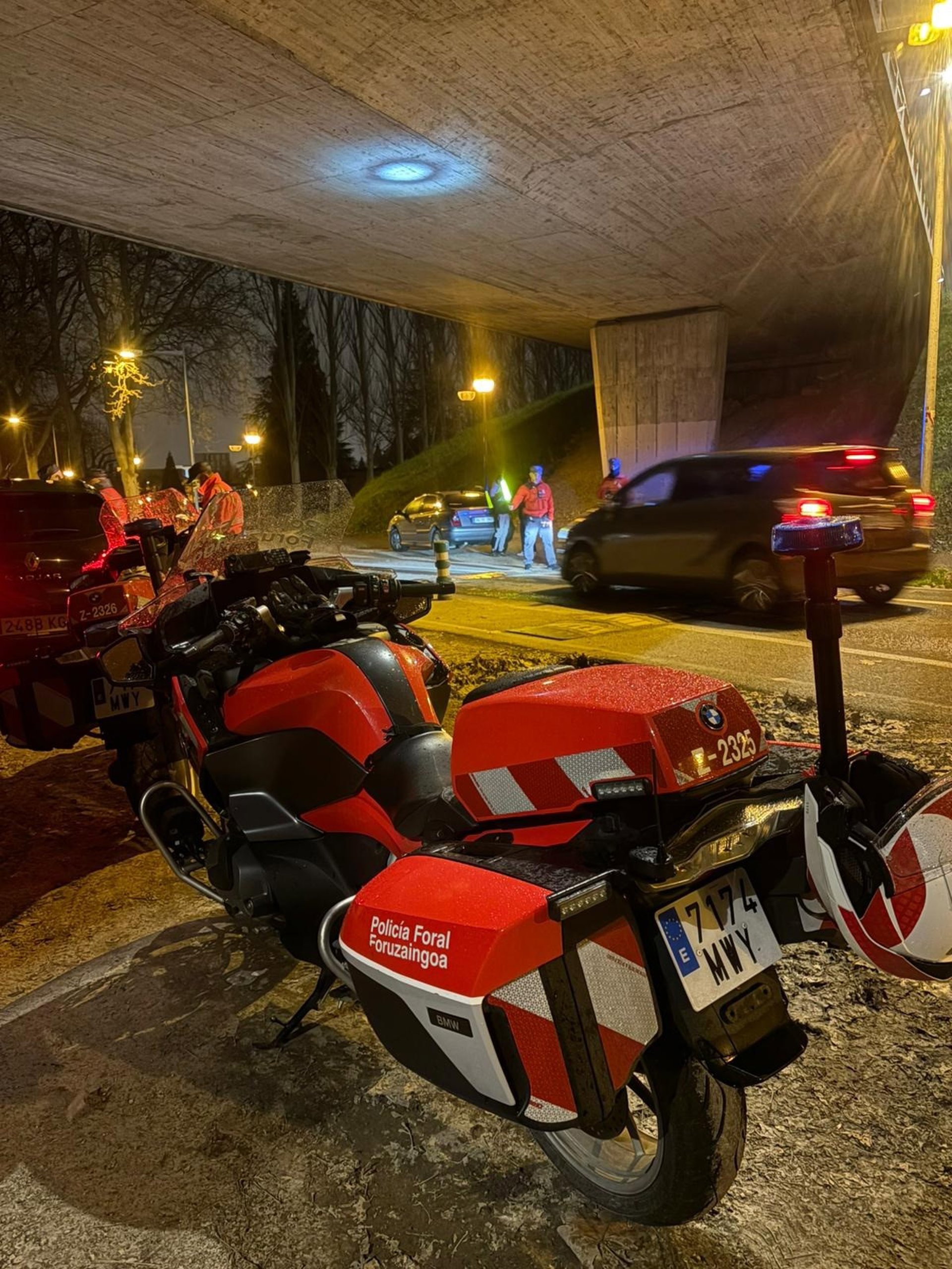 Dispositivo de la Policía Foral junto al vehículo del detenido. - POLICÍA FORAL