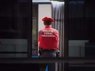 Un policia foral vigila en las inmediaciones del Parlamento de Navarra en el que se ha celebrado un pleno - Eduardo Sanz - Europa Press