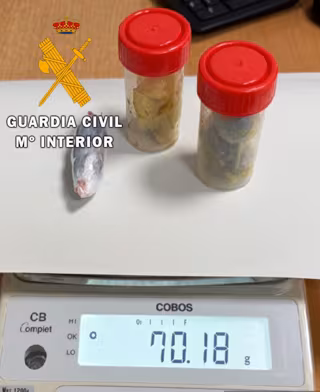 Droga localizada a uno de los detenidos. - GUARDIA CIVIL
