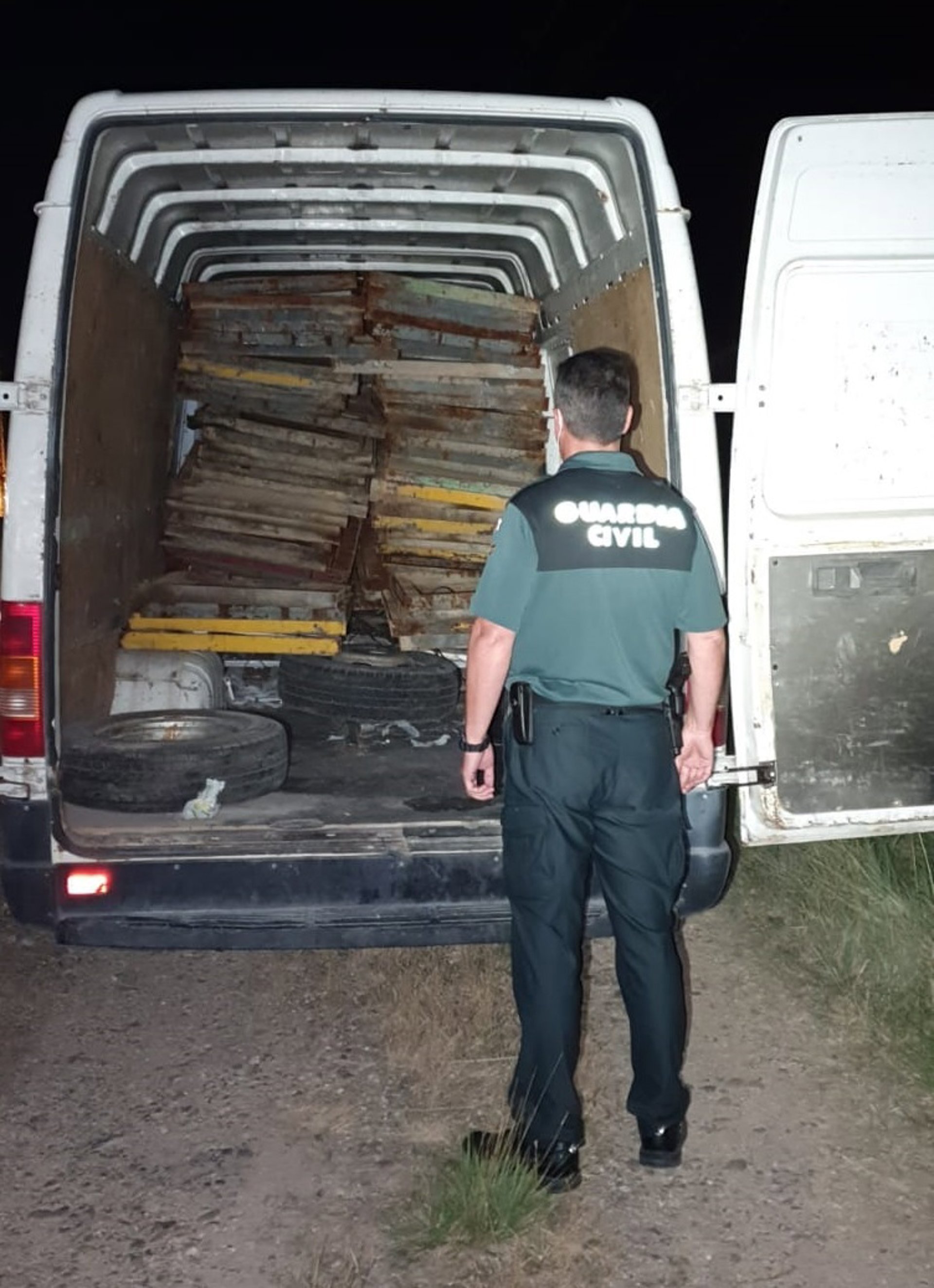 La Central Operativa de Servicio COS de la Guardia Civil movilizó agentes a esa ubicación, los cuales observaron en un camino paralelo una furgoneta con las dos placas de matrícula completamente tapadas. Posteriormente, se dirigieron hacia la fábrica, donde sorprendieron a dos personas saliendo de su interior.
