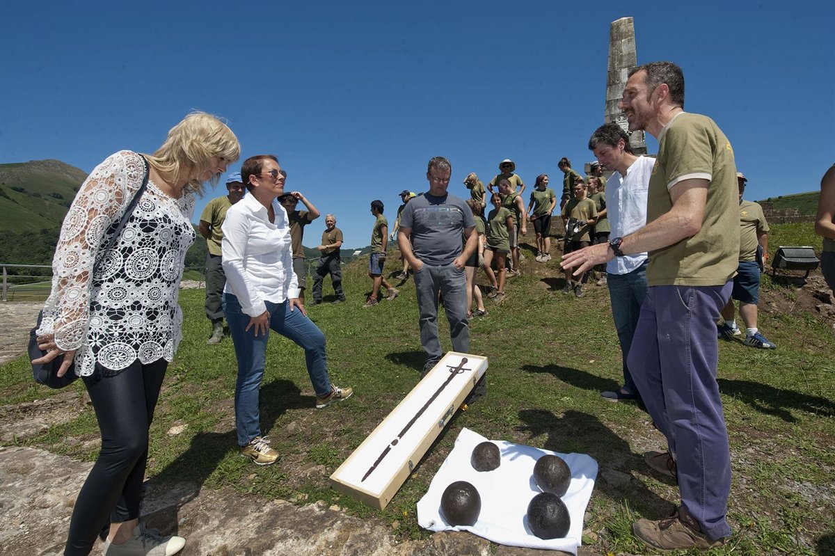 Durante la visita, Uxue Barkos ha podido ver algunos de los objetos más singulares encontrados en el lugar, fechadas a comienzos del siglo XVI, durante la conquista de Navarra, fecha en la que el castillo adquirió el mayor protagonismo. Se trata de una espada completa y de media docena de balas de cañón de hierro fundido, alguna de las cuales pesa cerca de 15 kg.