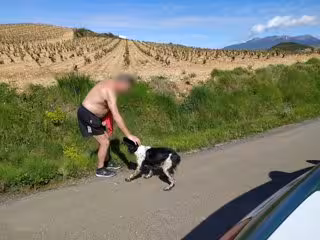 Entre las localidades de Baños de Ebro (Álava) y San Vicente de la Sonsierra (La Rioja), una patrulla de Tráfico sorprendió a una persona practicando practicando deporte y acompañado con su perro.