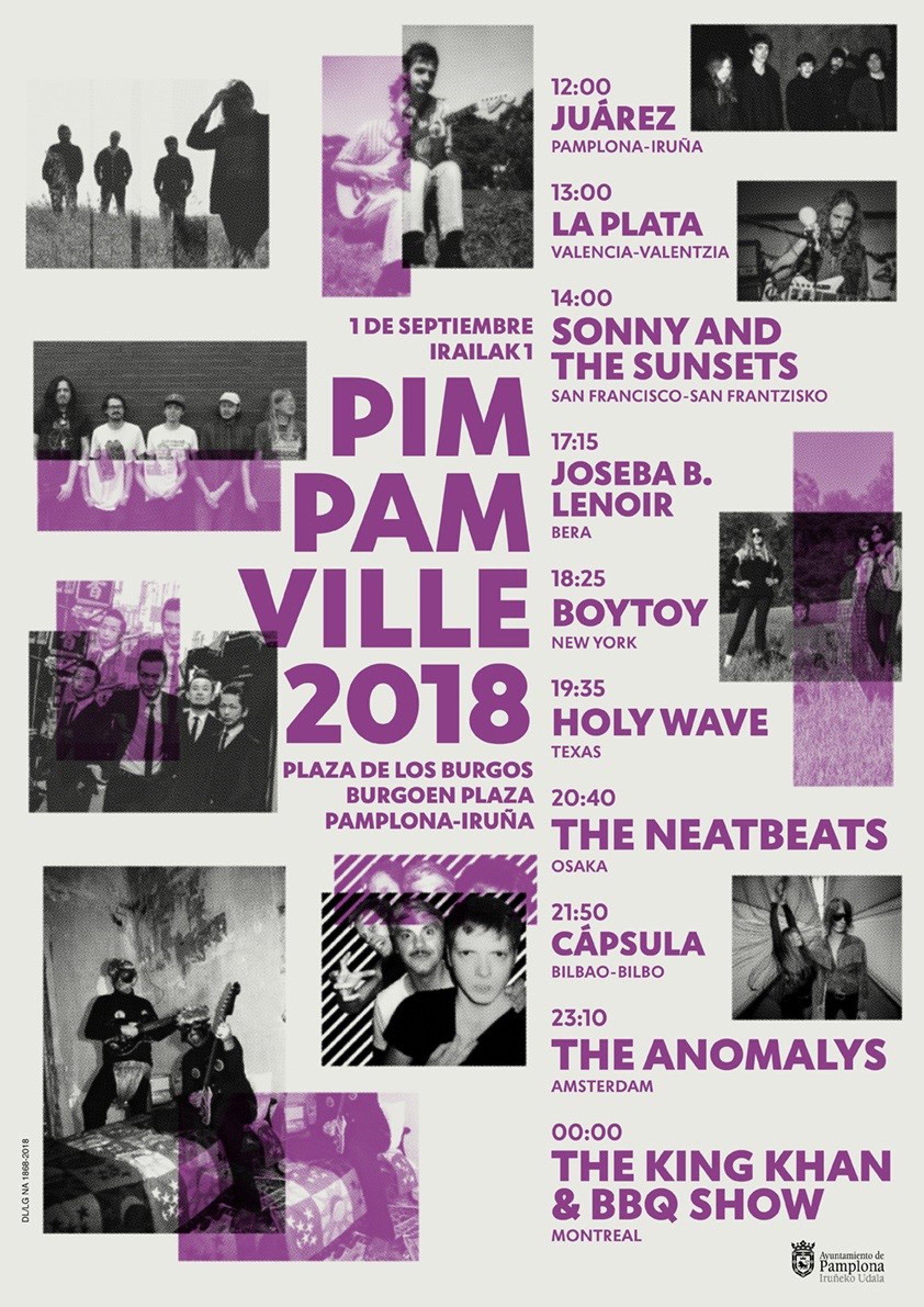 Diez formaciones de estilos musicales como punk, psicodelia, pop o rock subirán al escenario de la plaza de los Burgos, en Pamplona, el próximo sábado, 1 de septiembre, en la II edición del festival de música 'Pim Pam Ville' organizado por el Ayuntamiento de Pamplona dentro de los actos del programa del Privilegio de la Unión.