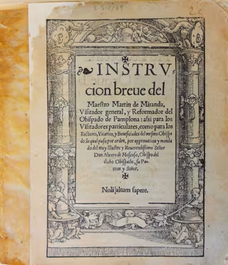 Este tesoro bibliográfico tiene dos méritos de alcance: el ejemplar de la Biblioteca Azcona es el único que se conoce. Y se trata de una obra importante para la historia eclesiástica de Navarra en la que se recogen algunas reformas y pautas a seguir por el clero tras el Concilio de Trento.