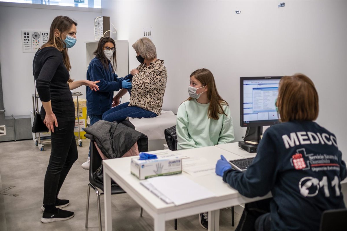 Ambas, abuela y nieta, han pasado un reconocimiento médico básico con la doctora Lopetegui y la enfermera Paula López, con la ayuda y la asistencia de la traductora Vika. En una pequeña salita, que hace tan solo unas semanas servía como espacio para hacer tests PCR, ahora les toman la tensión, les abren una primera ficha informática en el Servicio Navarro de Salud y les toman datos personales como su edad, su peso, si sufren enfermedades crónicas, tratan de saber si han pasado el COVID-19, si han tenido alguna cirugía o algún proceso médico relevante y saber qué vacunas tienen puestas.
