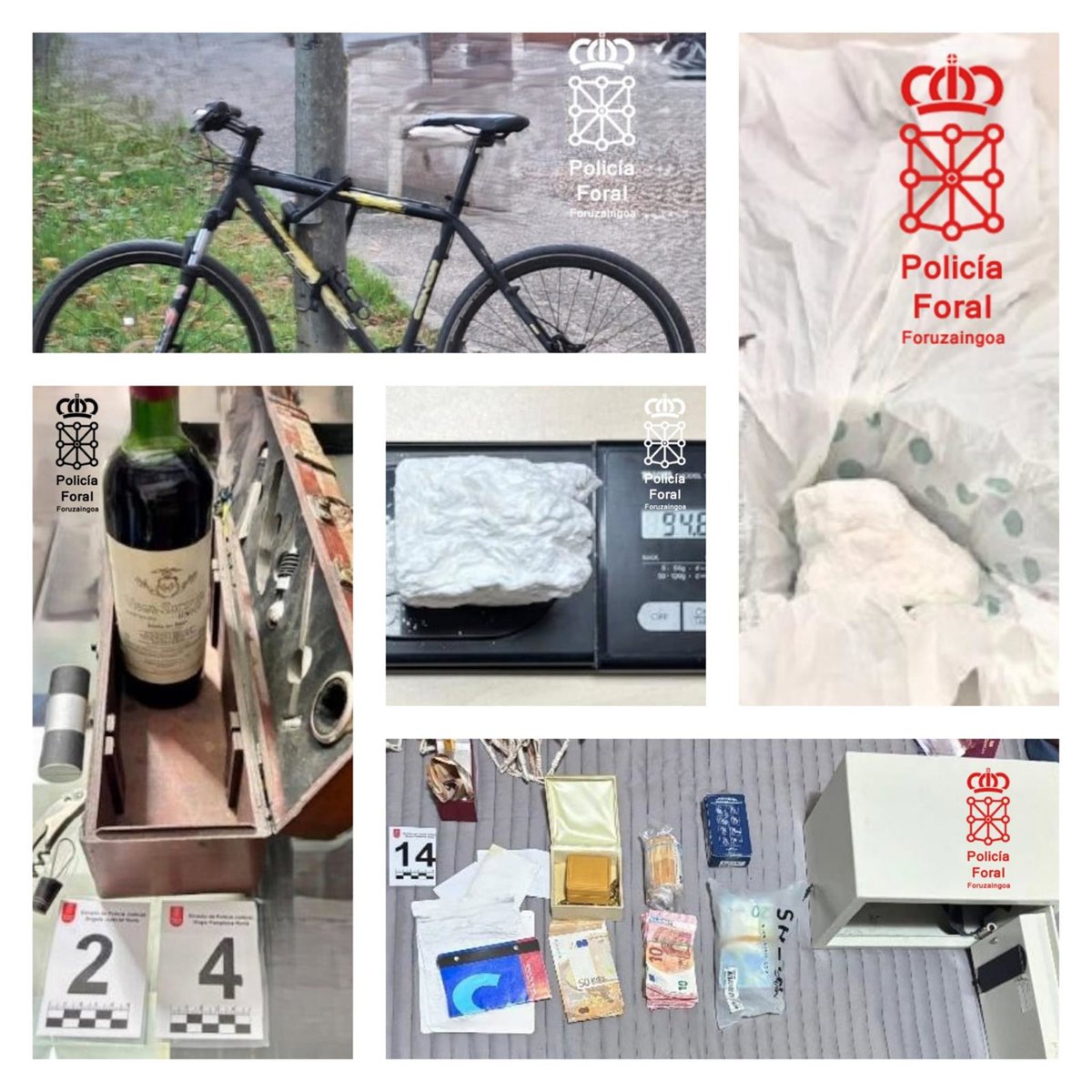 Interceptados ambos e identificados, se le intervino al varón, repartidas por las diferentes prendas que vestía, hasta 37 dosis de cocaína y 245 euros en metálico, motivo por el que fue detenido en ese mismo momento como presunto autor de un delito de tráfico de drogas, según detallan desde la Policía Foral.