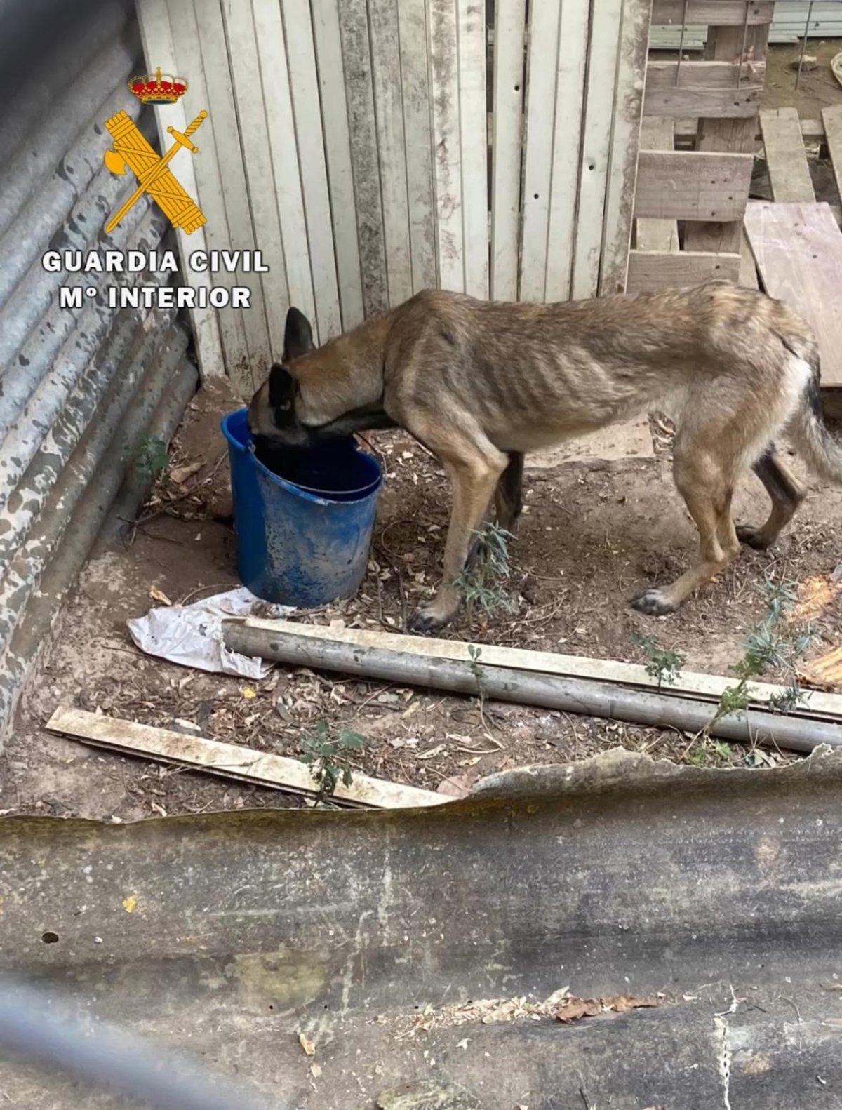 Una patrulla del Servicio de Protección de la Naturaleza (SEPRONA) se desplazó hasta la parcela y constató que cuatro perros presentaban un estado evidente de desnutrición, falta de agua y comida, y en un caso, heridas abiertas sin tratar. En el mismo recinto se encontró un quinto animal muerto en estado de descomposición. Al facilitar agua a los perros, los agentes comprobaron que bebían "con gran avidez, lo que confirmaba la situación de abandono", destacan desde la Guardia Civil.