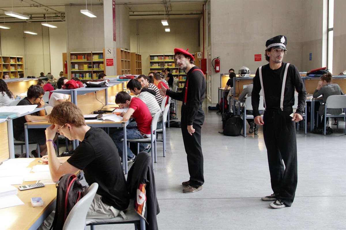 Los mimos, que son alumnos de la Escuela Navarra de Teatro, se han paseado en diferentes sesiones por la sala de estudio de la biblioteca y han invitado a los estudiantes a permanecer en silencio, según ha informado la UPNA en una nota.
