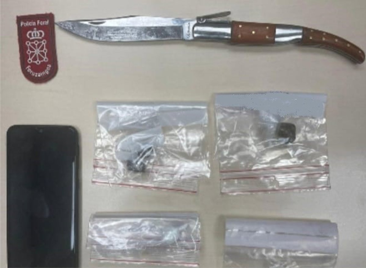 Dos personas han sido detenidas este fin de semana en el barrio pamplonés de la Rochapea por un delito de hurto (móviles), y a su vez han sido denunciadas por posesión de drogas (cocaína y marihuana) y por portar un arma prohibida (navaja).