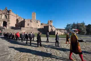 Como es tradición, la comitiva de autoridades ha efectuado la entrada a la basílica precedida por el rey de armas y maceros. Tanto a la entrada como a la salida se ha interpretado el Himno de Navarra, composición musical denominada 'Marcha para la entrada del Reyno', ha informado el Gobierno foral.