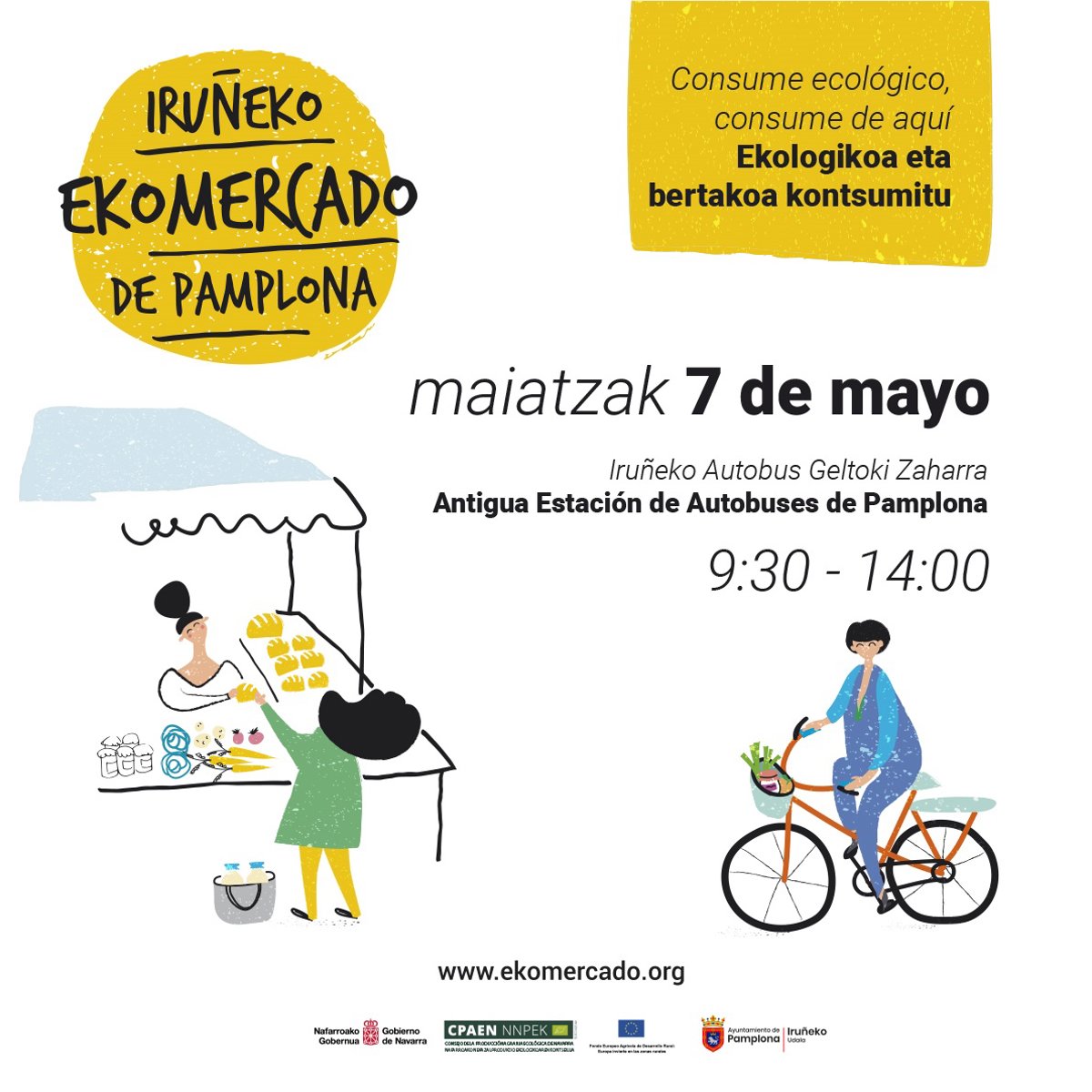Este sábado 7 de mayo volverá a celebrarse el EKOmercado de Pamplona en los andenes de la Antigua Estación de Autobuses con 16 puestos de alimentos ecológicos, locales y de temporada, y con un taller de cajas nido para familias.