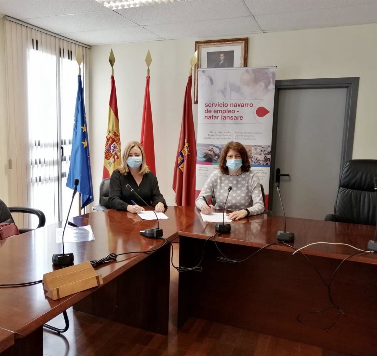Miriam Martón, directora gerente del Servicio Navarro de Empleo, en la firma del convenio con la alcaldesa de Mendavia, María José Verano - GOBIERNO DE NAVARRA