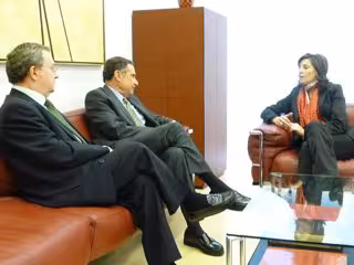 Sarría se reunió esta mañana en el Parlamento foral con la presidenta de la Cámara, Elena Torres, dentro de la ronda de visitas institucionales emprendida por el presidente de la CEN tras su reciente acceso al cargo, del que tomó posesión el pasado 26 de marzo, en sustitución de José Manuel Ayesa.