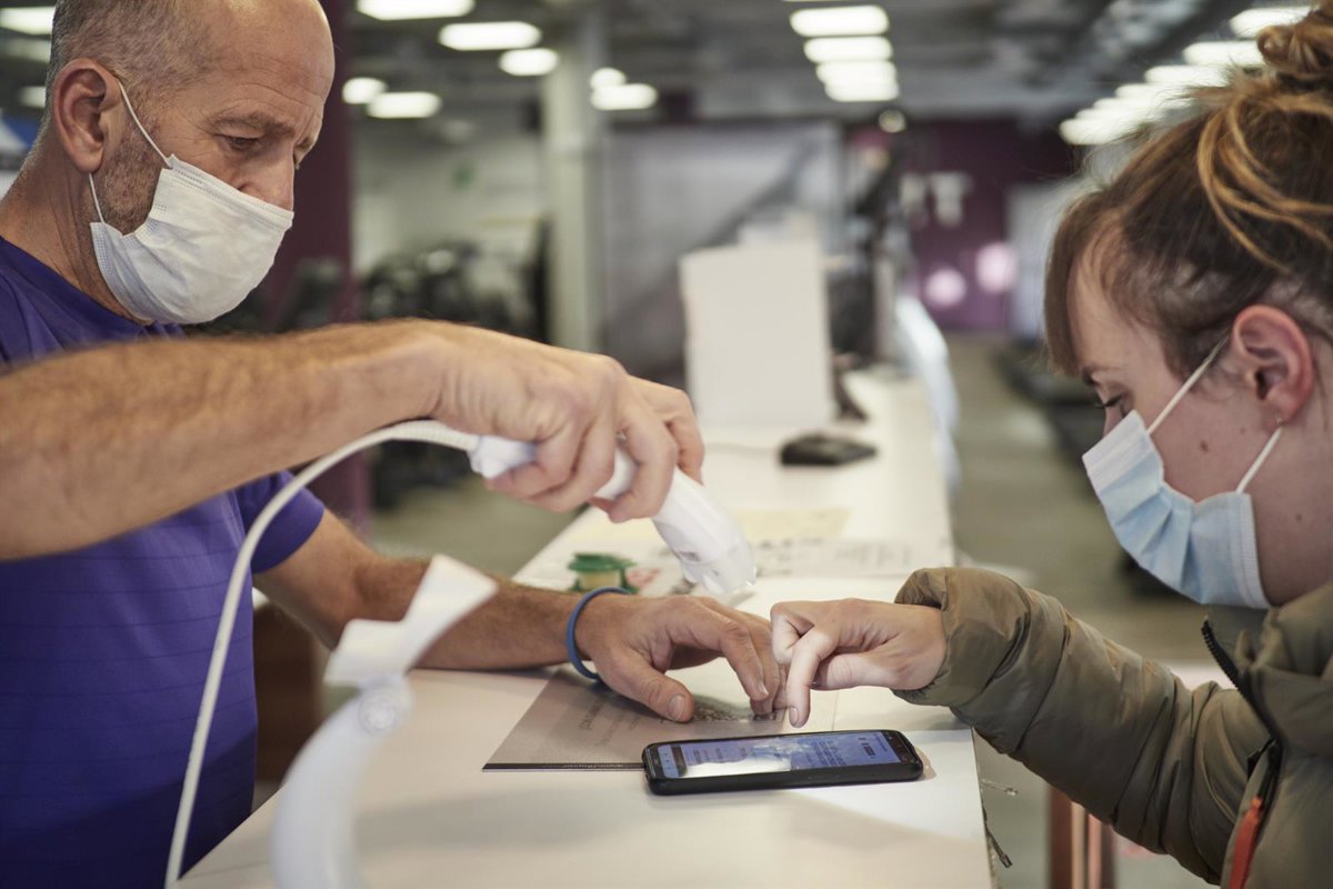 Un trabajador comprueba el pasaporte Covid en un gimnasio - EDUARDO SANZ - EUROPA PRESS