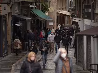 Transeúntes pasean por una calle de Pamplona protegidos con mascarilla debido a la crisis sanitaria del Covid-19, en Pamplona, Navarra, (España), a 11 de octubre de 2020. El Gobierno de Navarra aprobará una orden foral con nuevas medidas restrictivas pa - Eduardo Sanz - Europa Press
