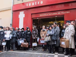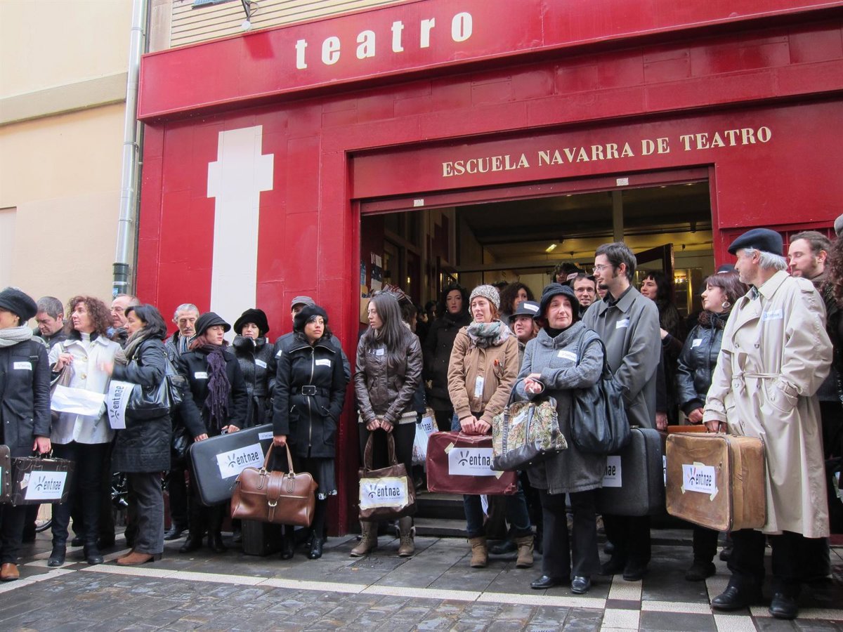 Por ello, miembros de la ENT, así como ex alumnos y personas vinculadas al mundo teatral, han acudido a las 11 horas al centro con sus maletas para iniciar un simbólico "viaje a ninguna parte". En cuatro grupos, han recorrido en silencio las calles del centro de Pamplona hasta llegar al Parlamento de Navarra.