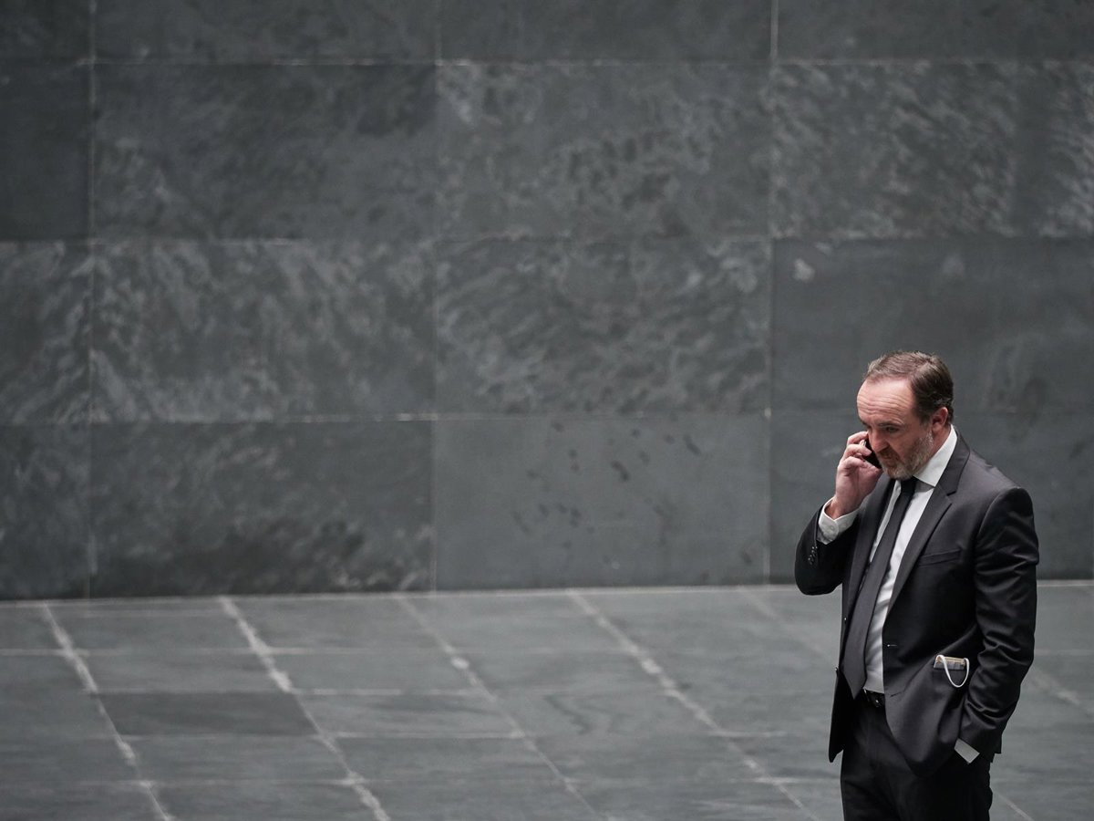 El portavoz del Grupo Parlamentario Navarra Suma, José Javier Esparza Abaurrea, antes de comenzar el pleno del Parlamento de Navarra donde se ha convalidado este martes por unanimidad un nuevo decreto ley foral aprobado por el Gobierno foral con medidas - Eduardo Sanz - Europa Press