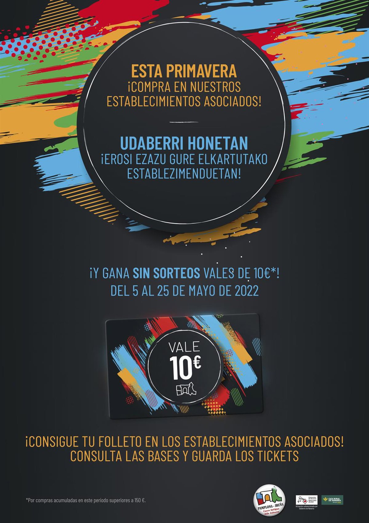 Los establecimientos asociados del Casco Antiguo de Pamplona inician una campaña de "compras encadenadas" en la que, comprando en las tiendas o consumiendo en los establecimientos de hostelería asociados entre el 5 y el 25 de mayo, el cliente puede ganar un vale de 10 euros sin sorteos para utilizar en su próxima compra o consumo.