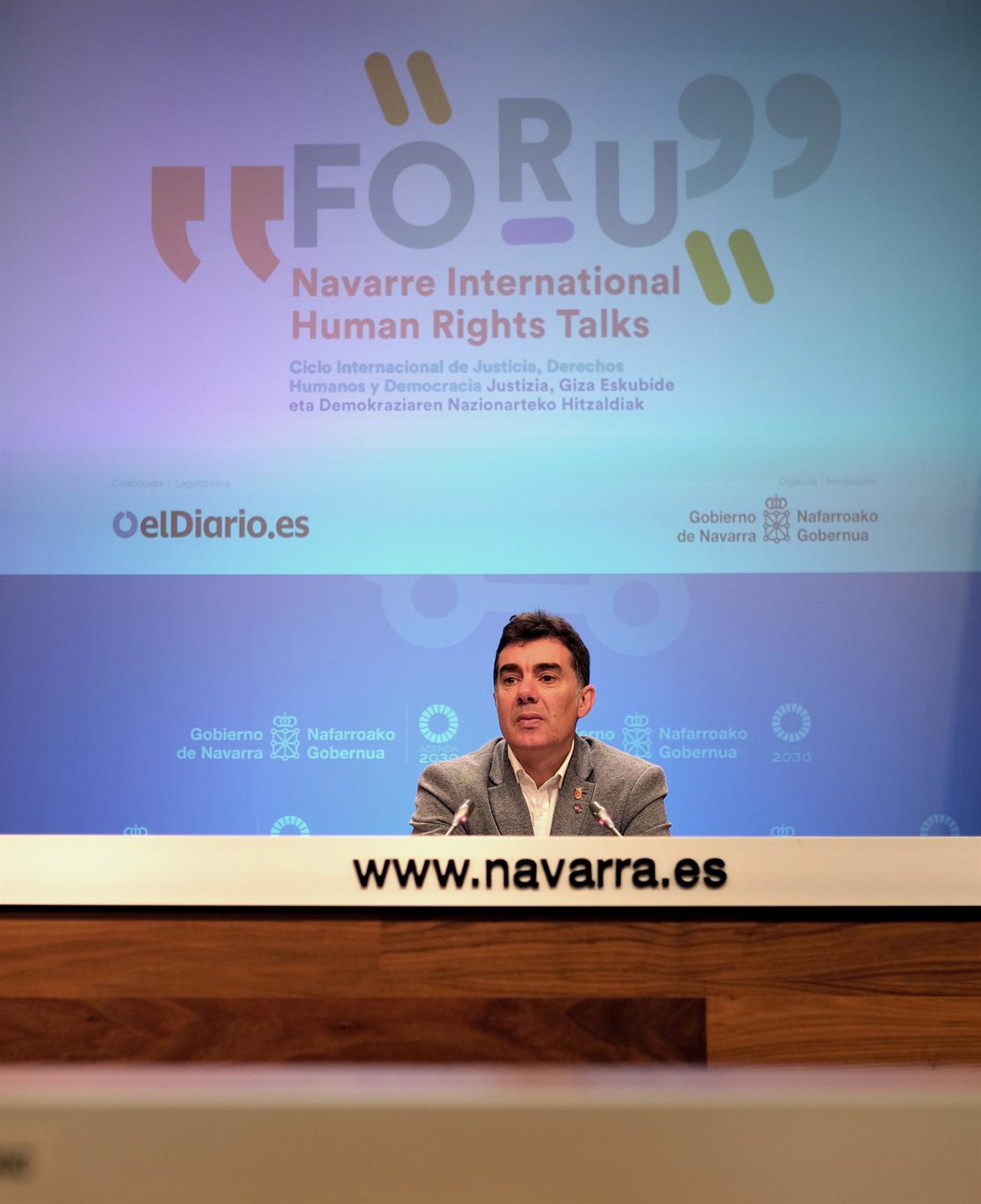 "Es en ese contexto de ruido", ha explicado, "y en el ámbito en el que nos atañe, en el que nace la necesidad de crear un espacio de reflexión que sitúe a Navarra a la vanguardia del intercambio de ideas y perspectivas sobre los Derechos Humanos y la Justicia".