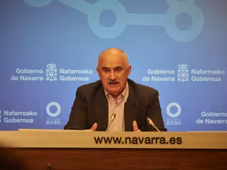El vicepresidente segundo y consejero de Ordenación del Territorio, Vivienda, Paisaje y Proyectos Estratégicos de Gobierno de Navarra, José María Aierdi, en rueda de prensa. - Eduardo Sanz - Europa Press - Archivo