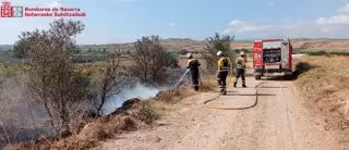Bomberos de Navarra han extinguido un incendio de vegetación declarado este martes por la mañana en una zona de regadío en la localidad de Lodosa.