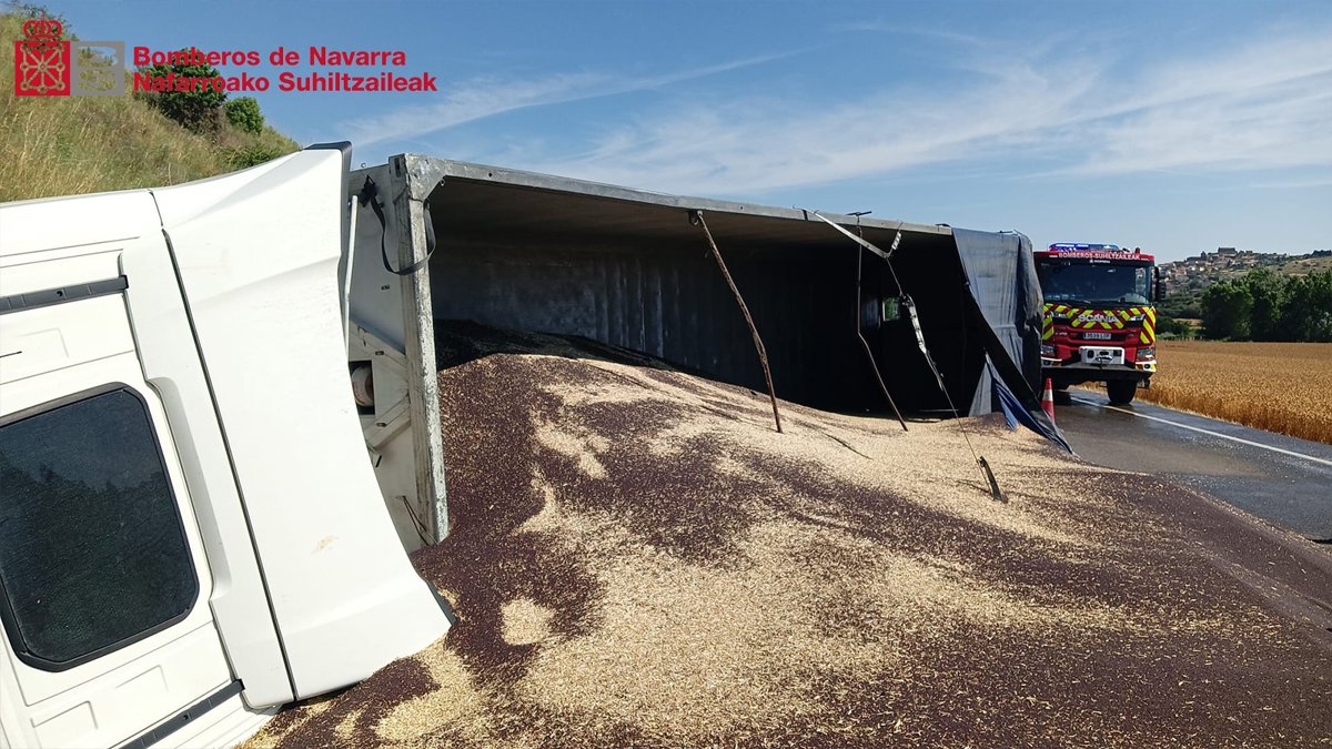 El centro de gestión de emergencias de SOS Navarra ha recibido aviso del siniestro a las 14.56 horas y ha movilizado al lugar de los hechos a efectivos de bomberos de los parques de Tafalla y Cordovilla, una ambulancia de soporte vital avanzado (medicalizada) y patrullas de la Policía Foral y de la Guardia Civil.