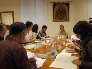 La presidenta del Parlamento de Navarra, Ainhoa Aznárez, y representantes de los departamentos de Educación, Derechos Sociales y Salud del Gobierno foral, así como del Instituto Navarro de Igualdad, han mantenido este viernes un encuentro con miembros de esta agrupación en la Cámara foral, donde ésta ha expuesto sus reivindicaciones.