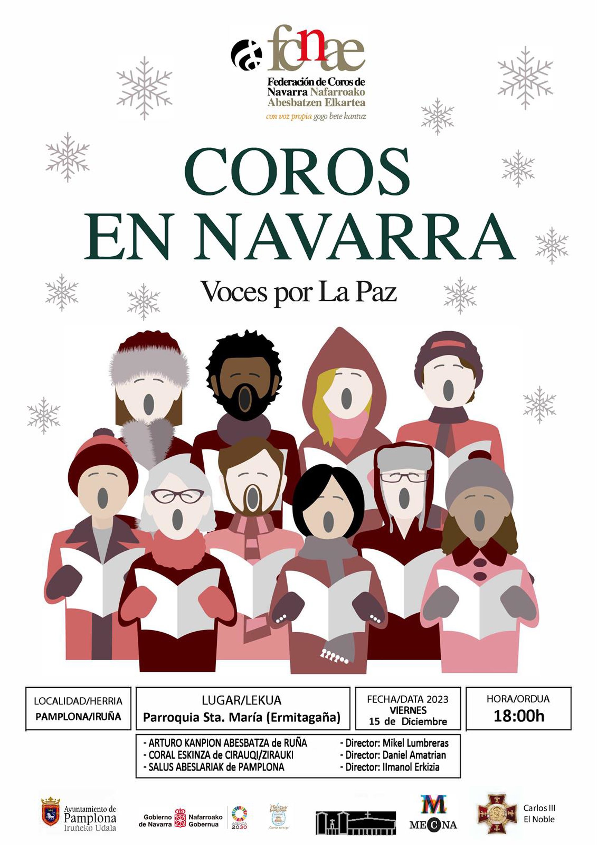 La Federación de Coros de Navarra (FCNAE) ha organizado un ciclo de 51 conciertos con temática navideña llamado 'Voces por la Paz' que se extenderá del 14 de diciembre al 6 de enero.
