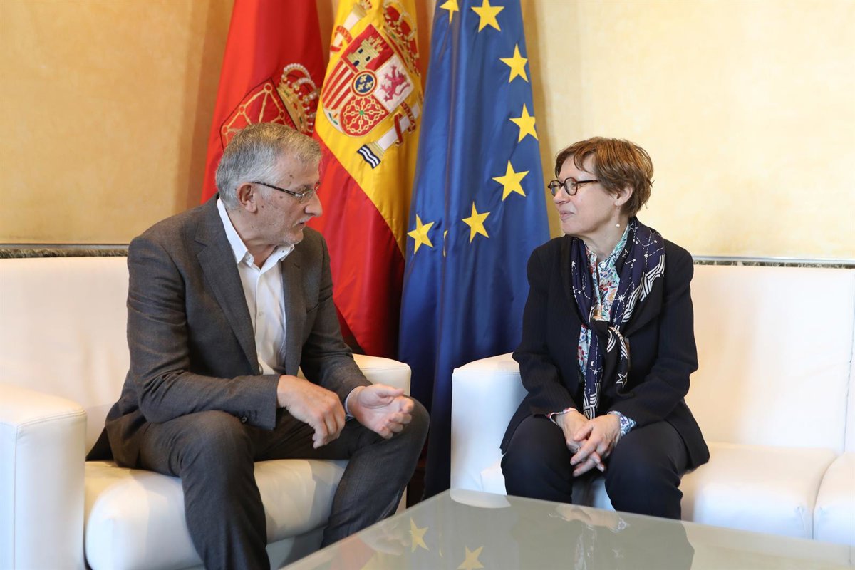 El vicepresidente primero y consejero de Presidencia e Igualdad del Gobierno foral, Félix Taberna, ha recibido este miércoles en el Palacio de Navarra a Marianne Carré, cónsul general de Francia en Bilbao. En el encuentro ambos mandatarios han reafirmado su deseo de "mantener unas relaciones institucionales de colaboración para prestar atención ciudadana a los ciudadanos y ciudadanas franceses residentes en la Comunidad foral".