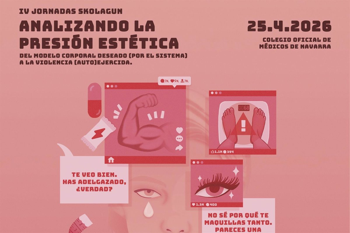 Gordofobia, 'gymbros', mujeres 'fit' son términos alusivos a una creciente presión estética imperante en el ámbito de las redes sociales que hace mella especialmente en la adolescencia y que van a ser analizadas en la IV Jornada Skolagun organizada por el departamento de Educación del Gobierno de Navarra que se celebra este sábado, 25 de abril, en la sede del Colegio de Médicos de Navarra en Pamplona bajo el título 'Analizando la presión estética, del modelo corporal deseado (por el sistema) a la violencia (auto)ejercida'.