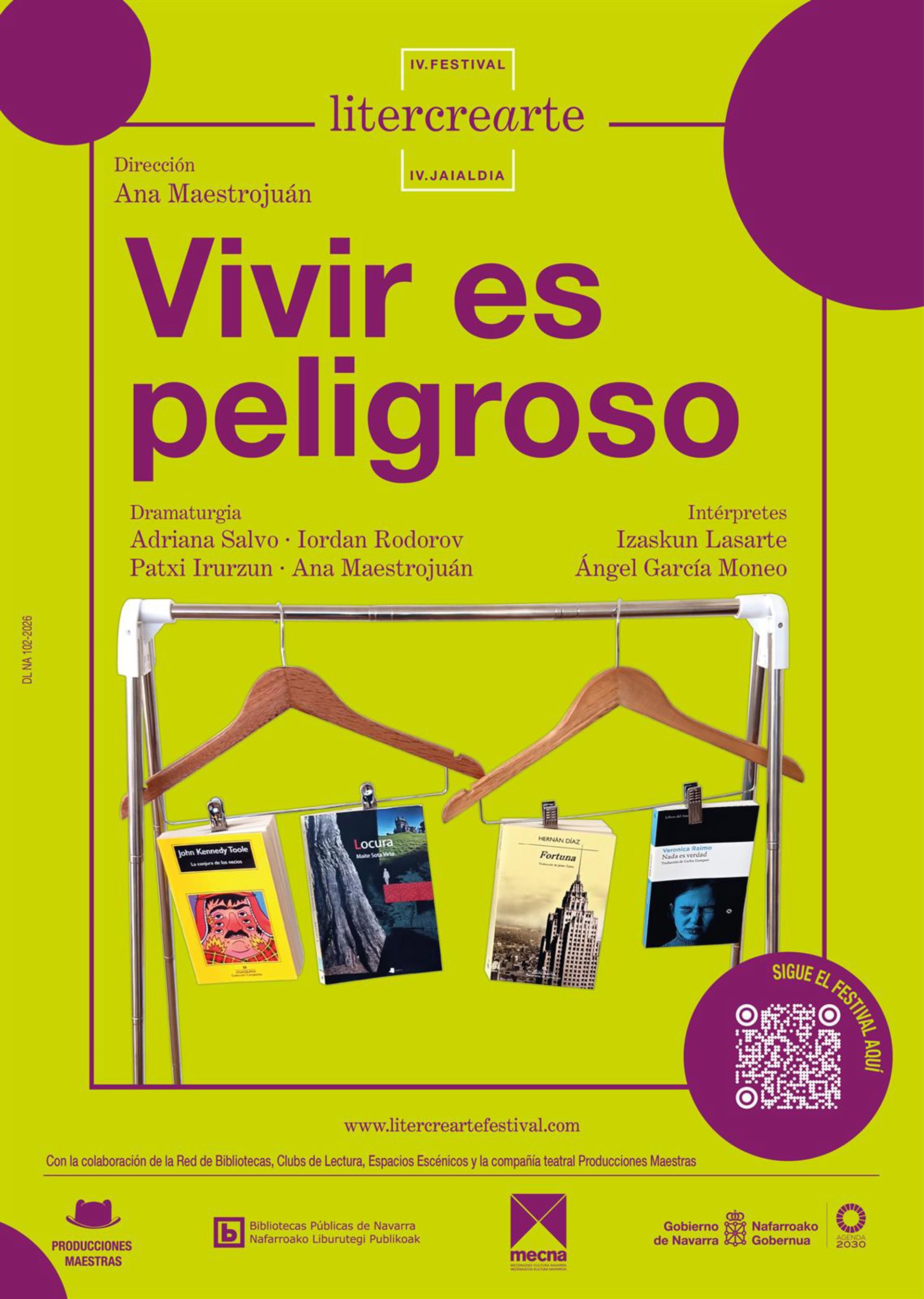La propuesta teatral producto de este trabajo y que lleva por nombre Vivir es peligroso se estrenará en la Biblioteca de Navarra (sala de proyecciones) el 3 de febrero a las 19 horas, con entrada libre hasta completar aforo.
