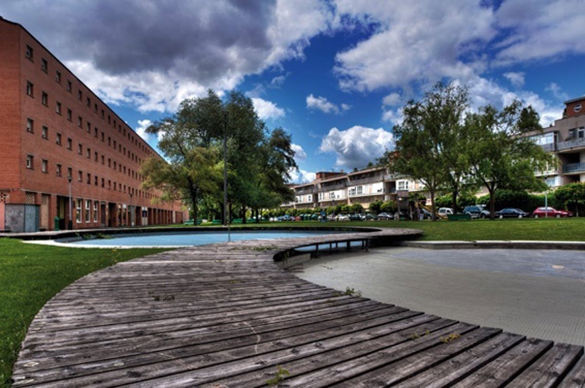 Una fotografía de Mendillorri realizada por José Félix García Díaz servirá de ilustración para la página del mes de mayo de 2012 del calendario del Ayuntamiento de Pamplona. La imagen ganadora del concurso municipal del mes pasado fue tomada desde una perspectiva cercana al suelo y refleja los edificios y parte de la zona verde.